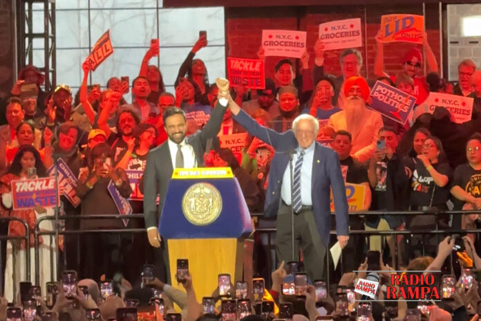 Mamdani wielokrotnie podkreślał, że jego polityka opiera się na zasadach demokratycznego socjalizmu i ma na celu walkę z rosnącymi kosztami życia oraz nierównościami społecznymi, zapewniając, że rząd może skutecznie działać na rzecz zwykłych mieszkańców. Na scenie dołączył do burmistrza na chwilę również senator Bernie Sanders, który chwalił burmistrza za jego dumę, z rządzenia w duchu demokratycznego socjalizmu.